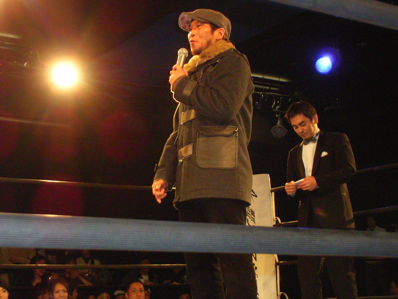 試合に興奮した?おじさんがリングに上がろうとしたり、