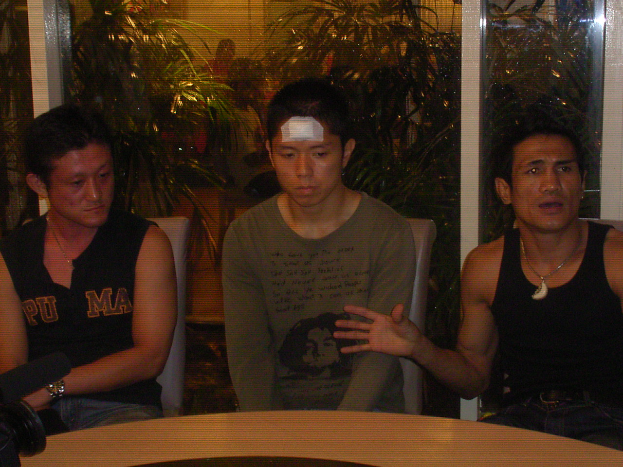 【タイにてセンセイふたりにはさまれて反省しきりの遠藤選手】